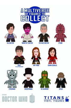 Celebrate the world's favorite space-and-time-traveling adventurer with the TITANS from the BBC and Titan Merchandise, a multiverse of figures to collect! The second collection of eleventh Doctor 3' TITANS, features (by popular demand) all of the 11th Doctor's companions, The War Doctor (played by Sir John Hurt) from 'The Day of the Doctor,' the newly designed Cybermen from' Nightmare in Silver,' the ever-ready, uncompromising ally Strax, and one yet-to-be-revealed surprise figure. Each figure is 3' blind-boxed and some come with a character specific accessory.