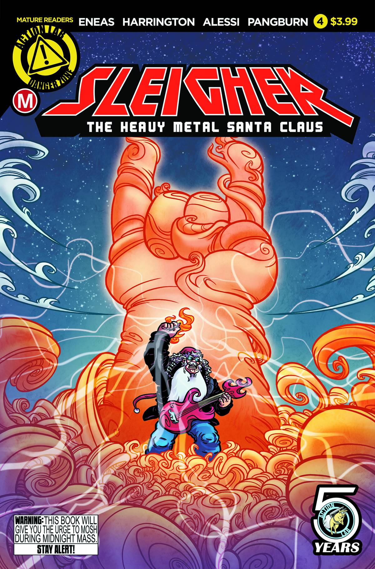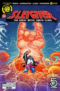 (W) Rob Harrington (A/CA) Axur Eneas. THE FINALE! As Christmas Day dawns, Sleigher must use his newfound yuletide powers to stop a troll witch from devouring the souls of the world's innocent children. Countless lives and (far more importantly) the glory of heavy metal itself, hang in the balance. Tune in to find out who'll be crowned the new X-mas idol!